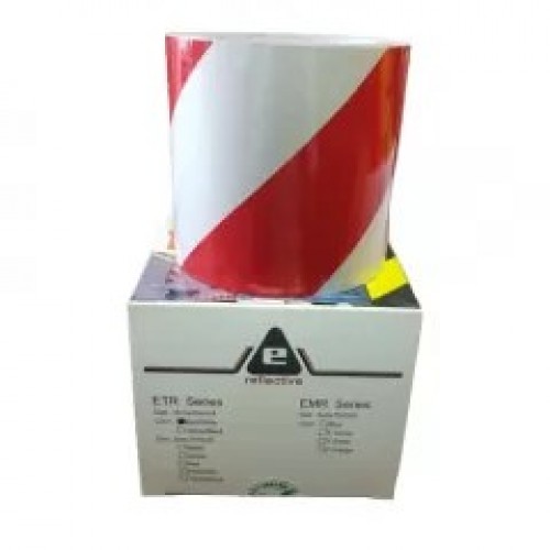 Etichete: Bandă adezivă reflectorizantă, alb/roșu, 10cm x 10m