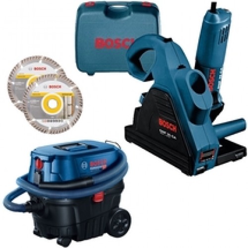 Etichete: Bosch GNF 35 CA + GAS 12-25 PL - Freza pentru caneluri beton, 1400 W, 150 mm, valiza plastic + Aspirator umed-uscat, 1250 W, 200 mbar, 25 l + Set discuri diamantate de taiere segmentate, 150x22.2x2 mm, 2 bucati