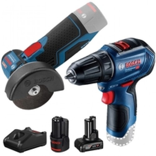 Bosch GWS 12V-76 + GSR 12V-30 - Polizor unghiular, 76 mm + Masina de gaurit si insurubat, 30 Nm + Set 2 acumulatori si incarcator, Li-Ion, 12 V, 2/4 Ah