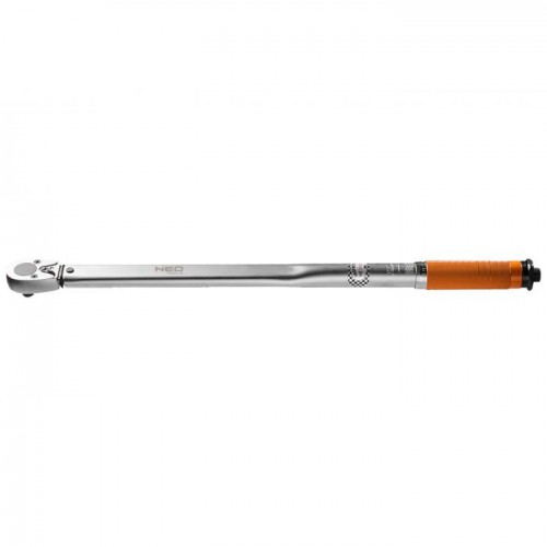 Cheie dinamometrica 1/2" cu o precizie de +/- 4%. Fereastra cu scala faciliteaza stabilirea valorilor dorite. Mecanismul puternic cu clichet din 24 de dinti. Fabricata din otel crom-vanadiu durabil. Cheia nu trebuie depozitata la valoarea maxima. Livrata intr-o cutie din plastic