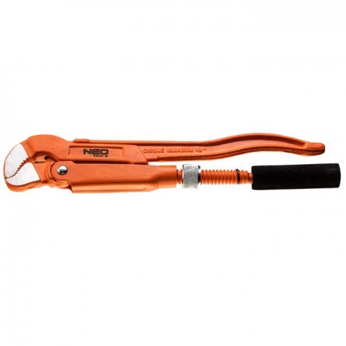 Cheie pentru tevi S realizata in conformitate cu norma DIN 5234. Falcile forjate din otel de inalta calitate crom-vanadiu, slefuite si lustruite. Acoperite cu maner anti-alunecare, se potriveste confortabil in mana si faciliteaza o prindere puternica. Calitatea uneltei este certificata de TÜV si garantia de 25 de ani a producatorului. Marca NEO indeplineste asteptarile profesionistilor. Lungime 535 mm. Greutate 2.4 Kg
