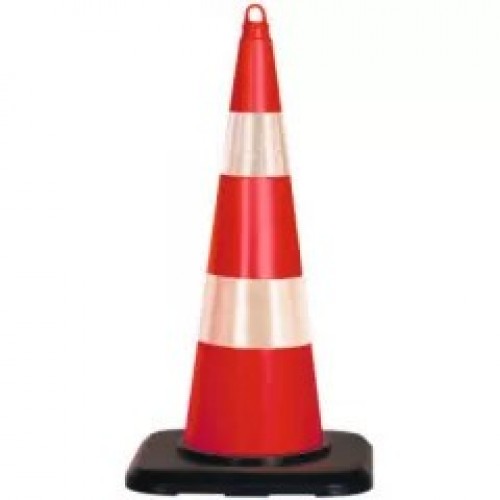 Conul este confectionat din material plastic flexibil portocaliu și este prevăzut cu 2 folii reflectorizante.