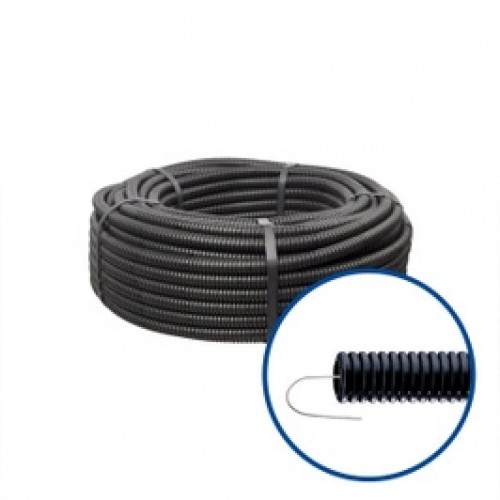 Tubul flexibil DX15132R cu sarma in interior este de culoare neagra si are diametrul de 32 de milimetri. Acesta nu propaga flacara si se comercializeaza la rola de 50 de metri lungime. Brand Gewis..