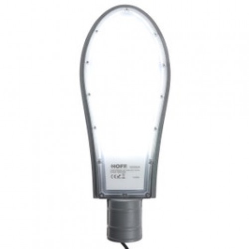 Corpul de iluminat stradal de la Hoff este realizat din aluminiu, iar lampa este prevazuta cu sursa de tip LED, cu o putere de 100W, un flux luminos de 8000lm si lumina rece (6000 K). Sursa are o durata de viata de pana la 30000 ore.