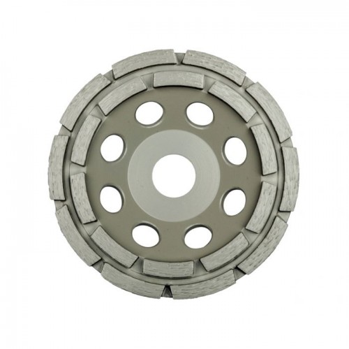Disc de slefuit tip oala cu segmente dispuse pe doua randuri cu capacitate mare de slefuire- agresivitate ridicata chiar si la presiune usoara. Domenii de utilizare: beton, sapa, materiale de constructii