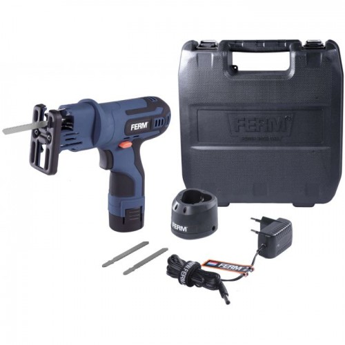 Ferastrau, 1 acumulator Li-Ion (12V - 1.5ah), 1 lama de ferastrau (lemn), 1 lama de ferastrau (metal), Incarcator, cutie de transport