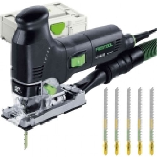 Festool TRION PS 300 EQ-Plus - Fierastrau pendular, 720 W, valiza speciala + Set panze fierastrau pendular, tija cu un prag de prindere (T), 75 mm, lemn, taiere in unghi, 5 bucati