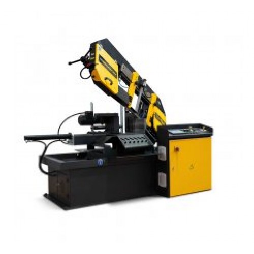 BMSO-300GA este un fierastrau complet automat care efectueaza debitarea prin coborarea automata a bratului de taiere si, cu ajutorul menghinei hidraulice, avanseaza materialul la lungimea de taiere stabilita din panoul de comanda tip PLC cu ecran tactil. Totodata, fierastraul permite programarea productiei de serie prin automatizarea numarului de bucati debitate.