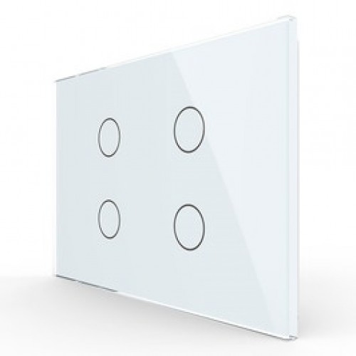 Intrerupatorul cvadruplu Livolo VL-FC4-3G-11 este realizat din sticla lucioasa alba si este prevazut cu indicator luminos (albastru - cand intrerupatorul este stins si rosu - cand intrerupatorul este aprins).