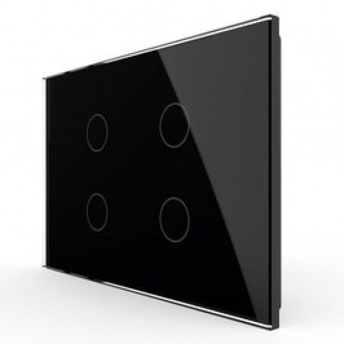 Intrerupatorul cvadruplu Livolo VL-FC4-3G-12 este realizat din sticla lucioasa neagra si este prevazut cu indicator luminos (albastru - cand intrerupatorul este stins si rosu - cand intrerupatorul este aprins).