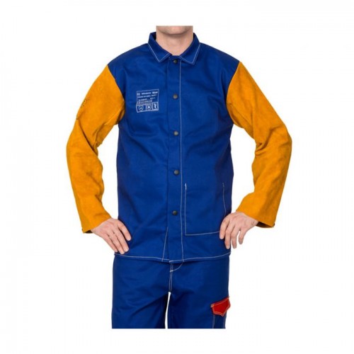 Yellowjacket® jacheta de sudura din bumbac ignifug albastru cu maneci din spalt de vita