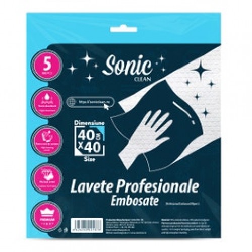 Laveta embosata de la Sonic Clean este o laveta profesionala cu destinatie casnica dar si industriala, datorita proprietatilor tehnice. Laveta embosata, pe langa aspectul deosebit, poate fi folosita de mai multe ori fara a se deteriora.