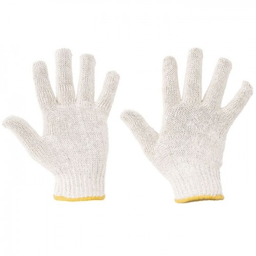 Manusi tricotate din poliester-bumbac albit, cu manseta elastica.
