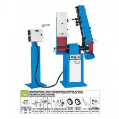 Date tehnice Banda abraziva 1500 x 120 mm Piatra abraziva Ø 200 x 25 x20 mm Turatii motor 1400/2800 rpm Putere motor 1,8 kW Tensiune 400 V Dimensiuni mas..