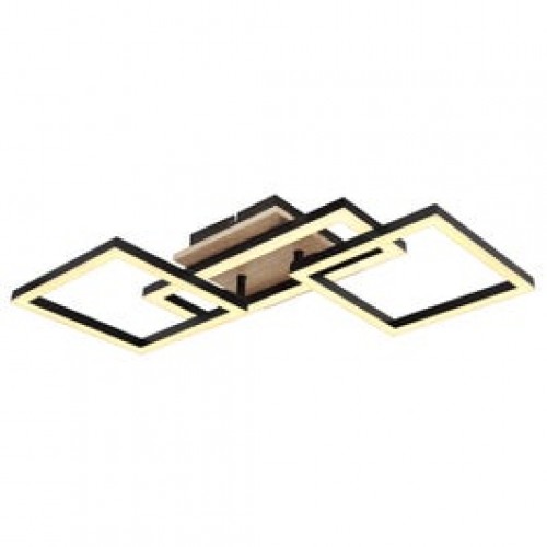 Plafoniera LED Bossy 67284-24 va va incanta cu designul sau geometric deosebit. Aceasta are o structura patrata cu aspect de lemn si trei panouri dreptunghiulare.