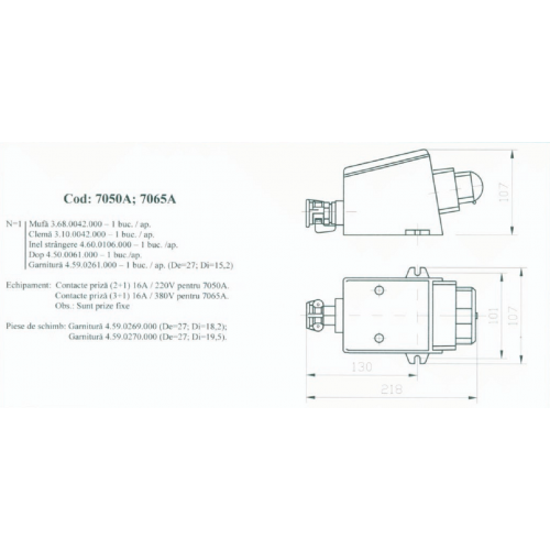 Ansamblu priza - fisa bipolara 16A, Cod Ex 7050A - 7055ADescarca Fisa Tehnica..