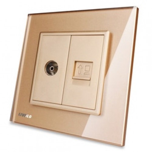Etichete: Priza dubla TV + internet Livolo VL-C791VC-13, rama din sticla, aurie