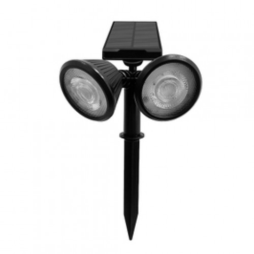 Proiector solar cu LED Hoff, 2 x 1W, lumina rece, plastic ABS, H 16.5 cm, negru, exterior