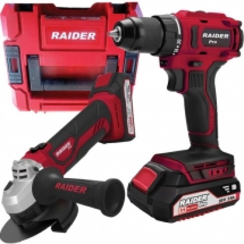 Raider RDP-PBCDI20&SPAG20 - Masina de gaurit si insurubat + Polizor unghiular, acumulatori, Li-Ion, 20 V, 2/4 Ah, valiza plastic