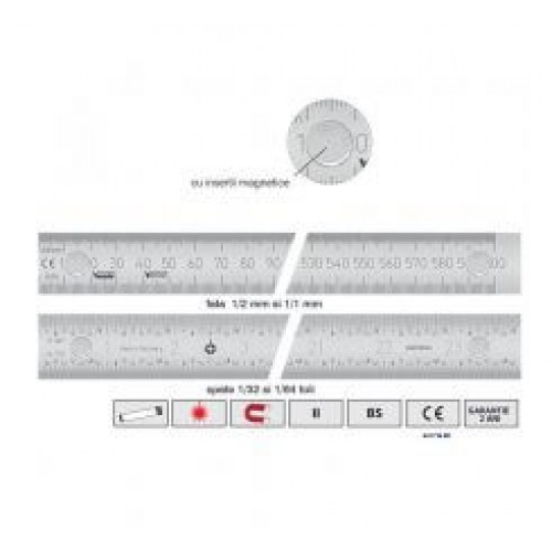 Etichete: Rigla din otel inoxidabil, cu insertii magnetice 600 / 24 mm / inch 1026433060
