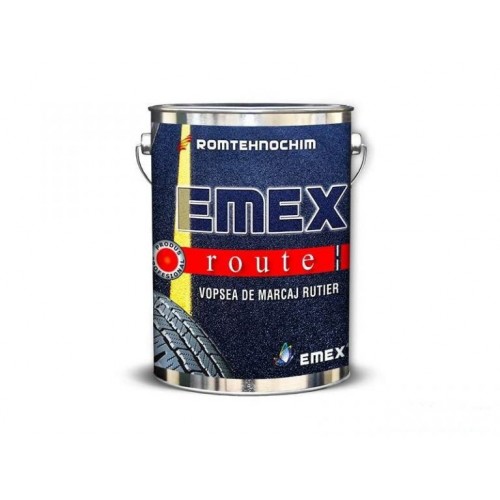 Vopsea pentru marcaje rutiere – produs monocomponent, cu aplicabilitate dedicata, profesional, pe baza de rasini acrilice termoplastice in solvent, materiale de adaos pentru duritate, cum ar fi faina de cuart si α-corindon, aditivi speciali si solventi organici, ce contribuie la uscarea foarte rapida, si etalarea superioara.