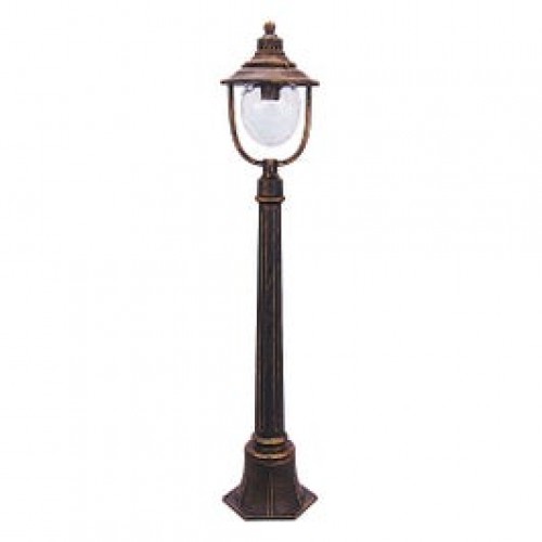 Stalpul de iluminat ornamental Barcelona 8679 este un corp de iluminat pentru exterior, realizat din metal vopsit auriu antic si abajur din sticla transparenta. Gradul de protectie la corpuri solide si lichide, de IP43, ii ofera o rezistenta sporita.