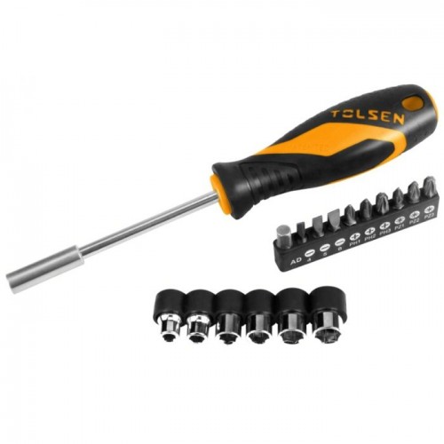 Set surubelnita + bituri 18425 Maner cauciucat din doua materiale. Material Crom-vanadiu. Magnetizat. Greutate 170 gBituri cruce 1/4": PH1, PH2, PH3..