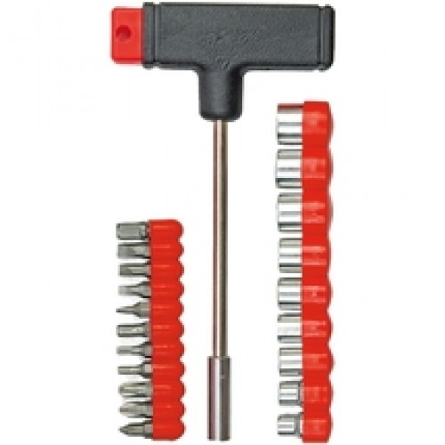 Set Vorel 65100 cu surubelnita tip T, capete de insurubare si chei tubulare.
